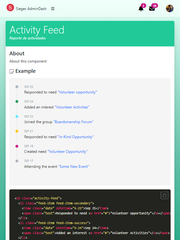 Sieger Admin Dashboard es una interfaz de administración diseñada para simplificar la gestión y control de aplicaciones o sitios web. Este panel de administración se caracteriza por su paleta de colores verde claro, que proporciona una sensación fresca y amigable. A través del Admin Dashboard, los usuarios pueden supervisar y gestionar datos, usuarios, configuraciones y otras funcionalidades clave de la aplicación. Su diseño intuitivo y limpio facilita la navegación y la toma de decisiones
